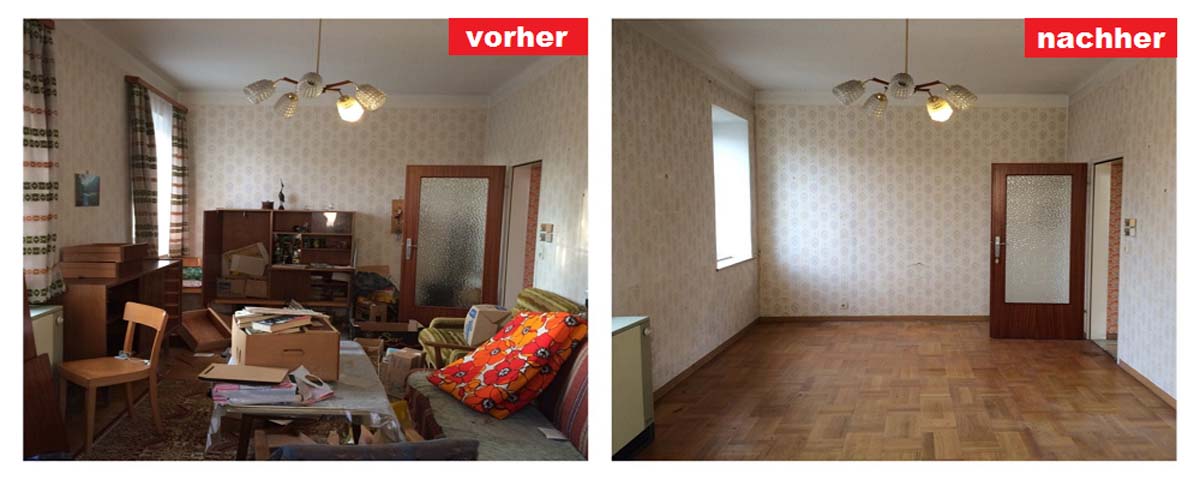 Mit über 30 Jahren Erfahrung wissen wir genau, worauf es bei einer effizienten Räumung ankommt. Unser Team übernimmt für Sie alle Schritte – von der kostenlosen Besichtigung über den Abtransport bis hin zur besenreinen Übergabe. Dabei arbeiten wir schnell, diskret und sauber. Auch kurzfristige Termine sind möglich!